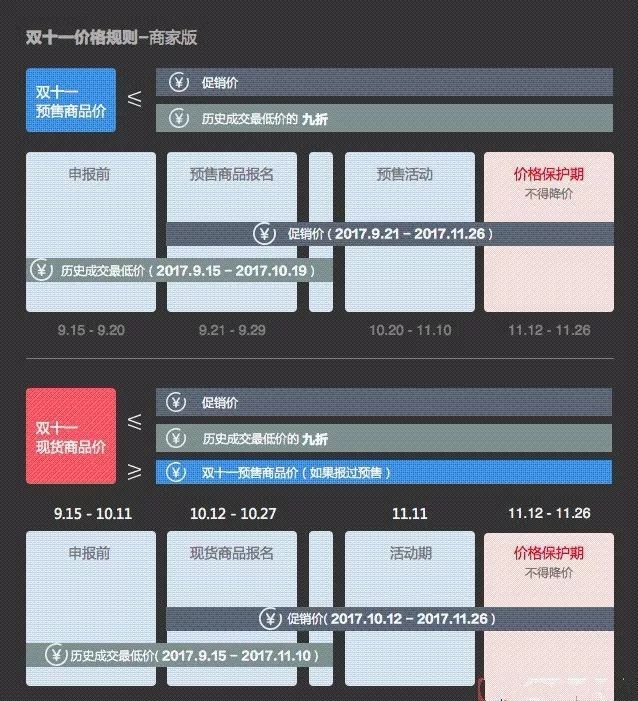 在《2017淘宝/天猫双十一活动报名规则》价格规则中有这么一张图——