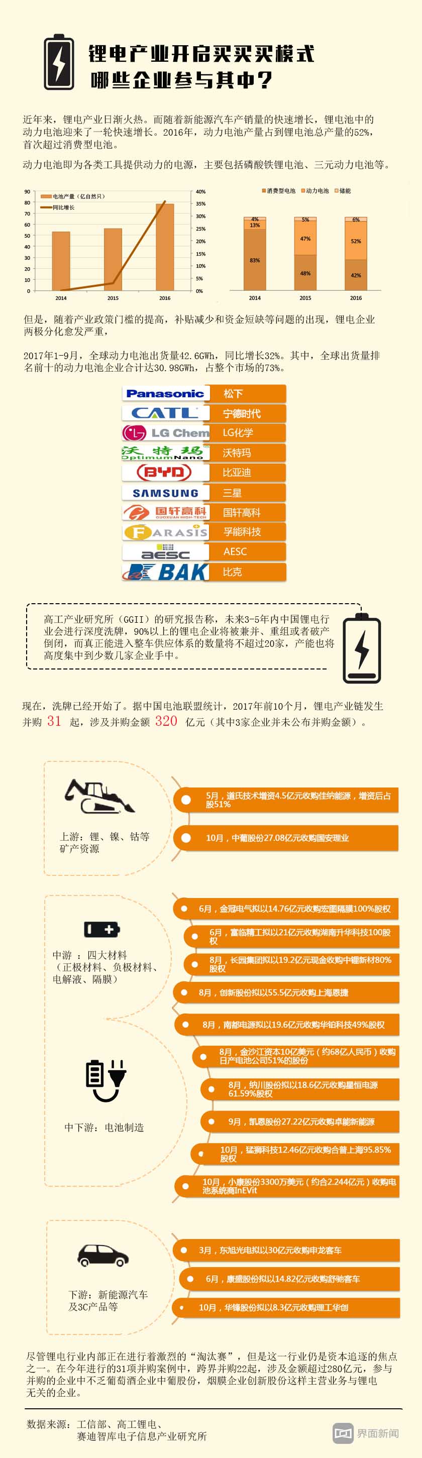 今年前10个月,锂电全产业链发生并购31起,涉及并购金额320亿元。