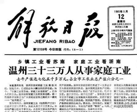 1985年,解放日报刊登《乡镇工业看苏南,家庭工业看浙南,温州33万人从事家庭工业》,并同时配文《温州的启示》,至此“温州模式”被正式提出。