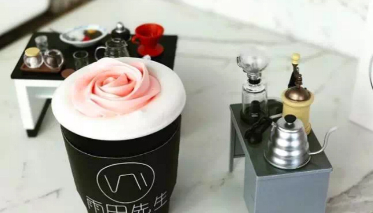 “雨田先生手冲饮品吧”的招牌作品真名叫“部长鲜奶茶”,主料是阿萨姆红茶里加鲜奶打成的奶泡,因奶泡上“蹲”有一只可爱的柴犬棉花糖,于是得名“柴犬奶茶”,这也是吸引众多年轻消费者前往打卡的主要原因。除了柴犬奶茶,还有另一款很受欢迎的玫瑰浮雕奶茶,将耐泡做成一朵玫瑰,少女感爆棚,而且口味更加复杂。
