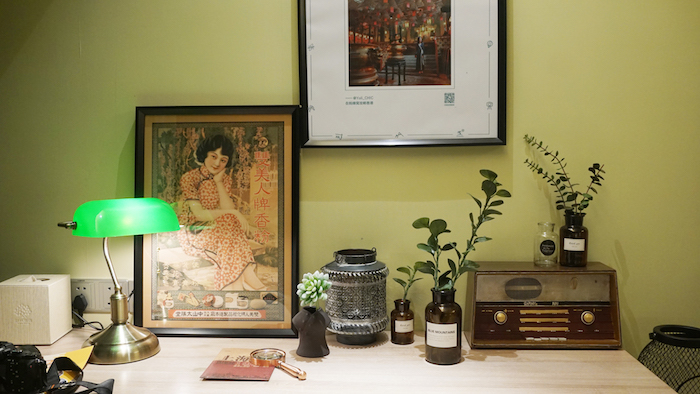 其他房间也与各自定位类似。比如“朋友圈GPS”是少女心粉色调,布置成Instagram上流行的网红风格;“本地卧底”则用老式留声机和台灯把房间装饰成老上海味道。