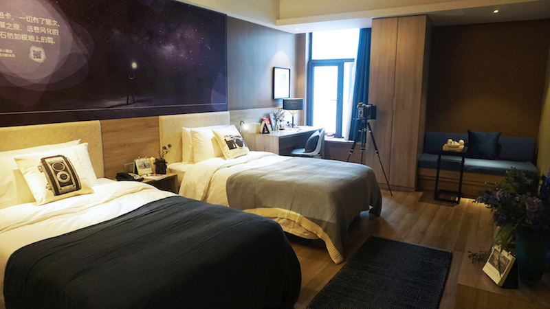 不过这家旅行人格酒店在现实中只存在72小时,房间数量并不多,每晚只有9间客房。事实上,这是蚂蜂窝与亚朵酒店合作推出的线下活动:将亚朵酒店装修改造,在三天中变成虚构的“旅行人格酒店”,消费者则可以通过蚂蜂窝进行现实预定。