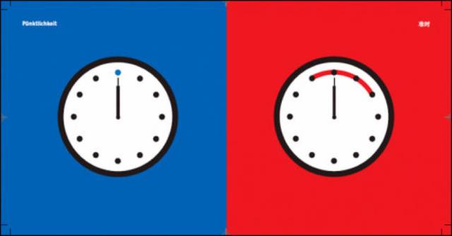 另外也想分享一位在德国学习过的北京艺术家Yang Liu的作品,她用生动简明的图片展现了中德文化间的一些对比(蓝色代表德国,红色代表中国),也可以作为中美文化差异的参考。
