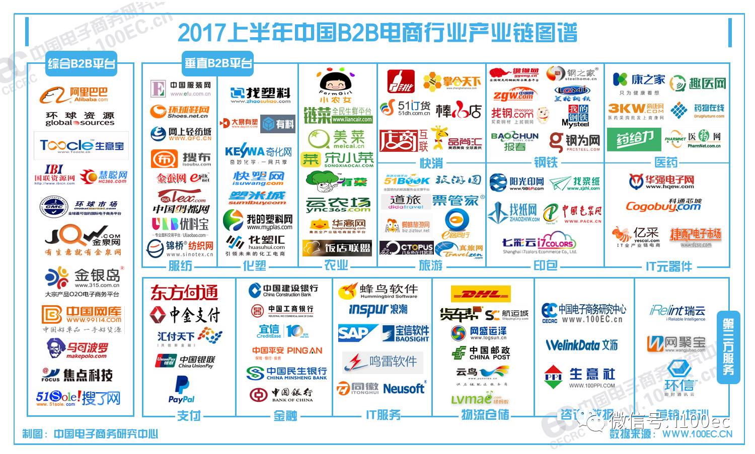 据中国B2B电子商务网(www.100ec.cn/zt/B2B)企业数据库监测显示,近两年中国B2B电商垂直领域快速崛起,正在“撬动”中国具备万亿市场规模相对“封闭”的领域。目前在B2B市场包括综合类的阿里巴巴、生意宝、环球资源、慧聪网、焦点科技、环球市场、金泉网、中国网库等;钢铁类的上海钢联、中钢网、钢之家、钢宝股份、找钢网等;服纺类的中国服装网、环球鞋网、网上轻纺城、搜布等;化塑类的找塑料网、环球塑化网、奇化网、快塑网、找化工网、化塑汇等;农业类的小农女、美菜、有菜、链菜、云农场等;旅游类的票管家、旅游圈、真旅网等;快消类的易酒批、品尚汇、进货宝、掌合天下等;医药类的珍诚医药、商康网、药给力等;印包类的中国包装网、七彩云、阳光印网等;IC元器件类的华强电子网、维库电子网、亿采网等。