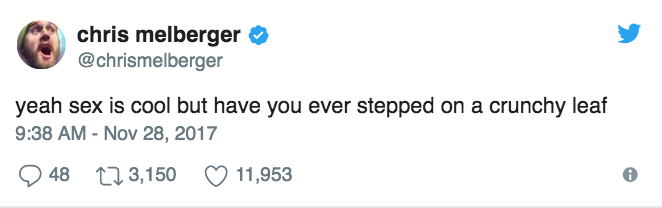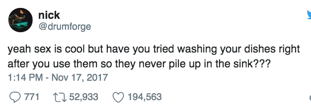 可能有些肤浅的人类觉得,生命的大和谐莫过于滚床单,然而推特网友分分钟告诉你,那只是生活经验不足所导致的天真幻觉,这世界上比滚床单爽的事情有的是呢:)