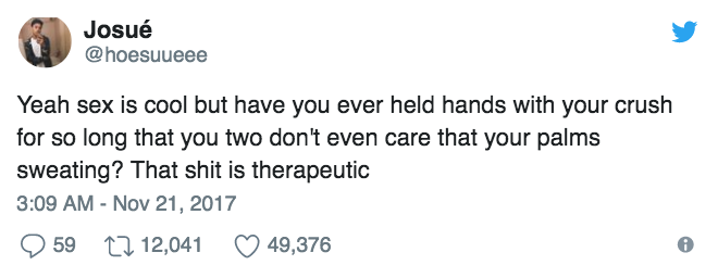 滚床单是很爽但是你有没有试过跟你爱的人长时间地手拉手,手心都出汗了也不去在意?那才是真的治愈。