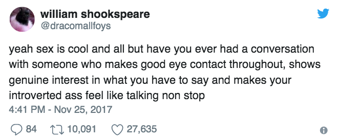 滚床单是很爽但是你有没有试过跟那种特别会倾听,还一直看着你的眼睛,显得兴致满满的人聊天,然后无论你多内向都想说个不停?