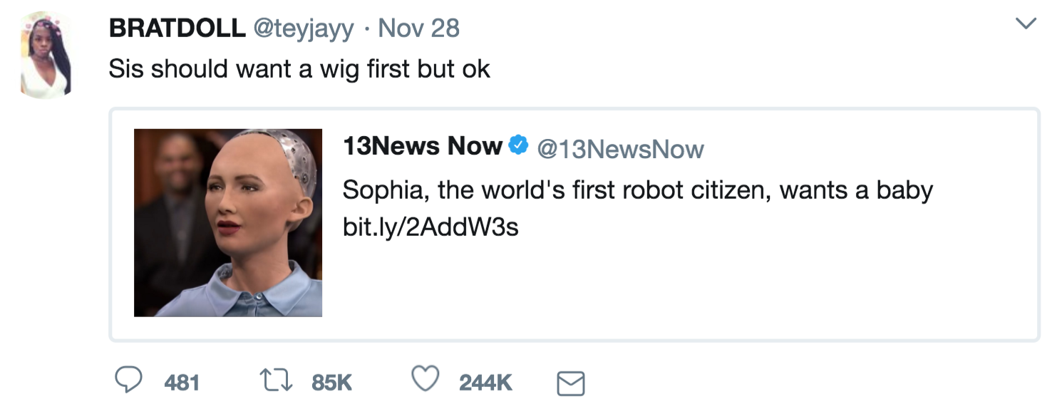 而在上周的一次采访中,Sophia向媒体表示:自己未来的梦想是拥有一个家庭,而其中当然也包括一位机器人宝宝。