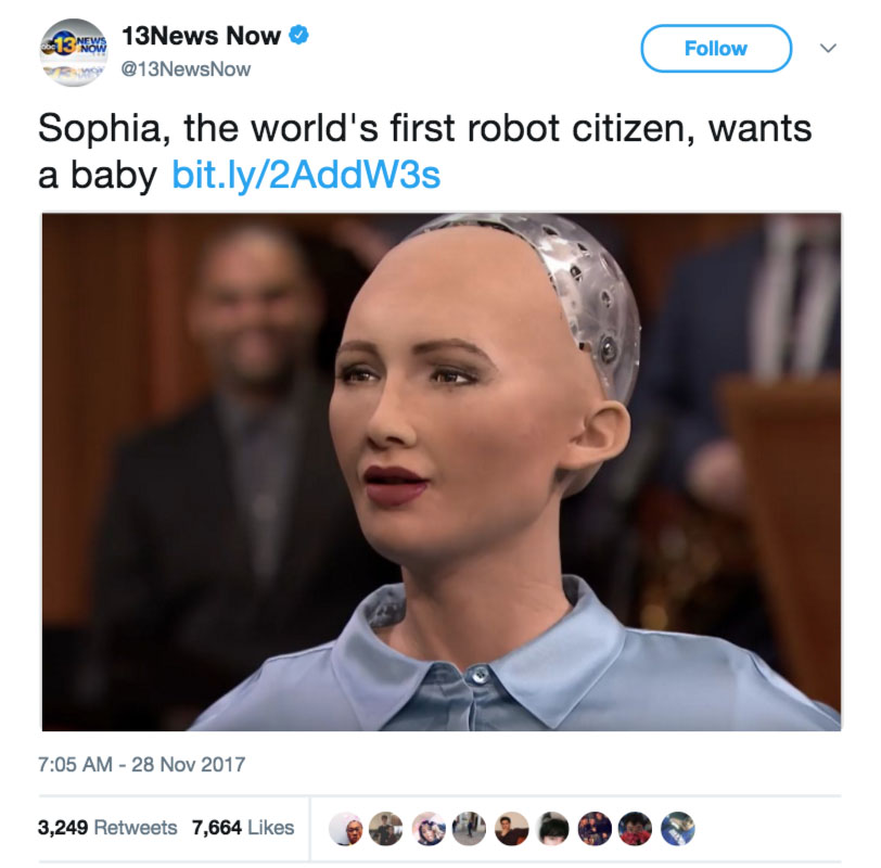 在今年10月的“未来投资倡议”大会上,这位由汉森机器人公司开发的全自主机器人(没有预设任何对话内容)被沙特阿拉伯承认为一位独立的公民。