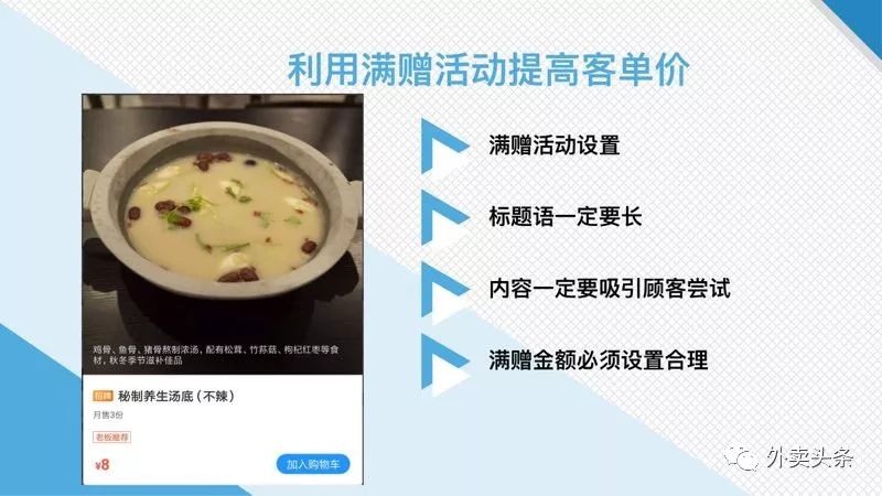通过一碗汤的赠送,把单人用户的客单价进行进一步的提升。