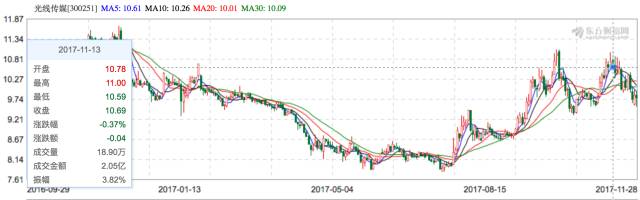 从11月13日王洪田(王长田弟弟)减持光线股票开始,好不容易有所回暖的光线股价就走出了下行曲线。截至今日(11月30日),光线股价已跌至9.33元/股,相较于11月13日前一工作日的收盘价(10.73元/股),已下跌了13%,短短18天的时间,整体市值蒸发了41亿。
