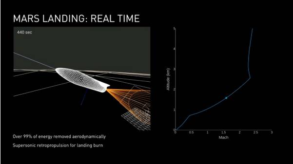 埃隆告诉观众,新的BFR设计添加了三角翼和gimbaling火箭发动机,它能在“多种大气和载荷条件”下实现再次登陆。他们的物理模拟显示,新的火箭系统将允许推进超音速再登陆、减速和精确机动,以确保在火星、地球和“卫星”安全着陆。