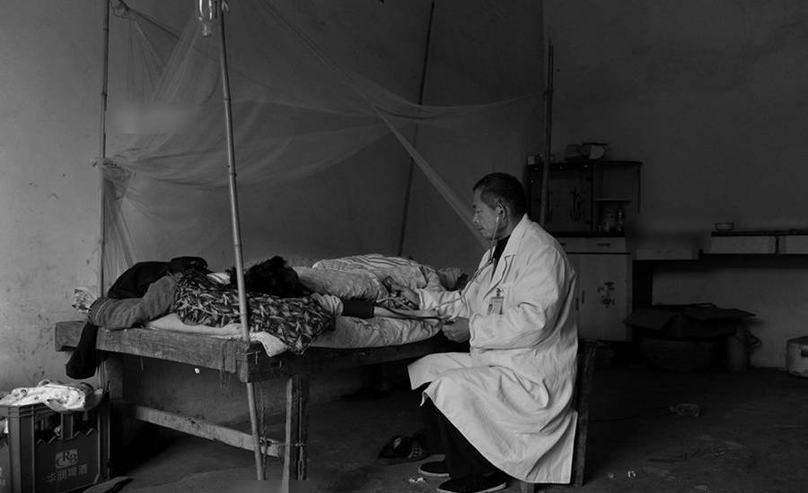 ▲ 安徽省阜南县一个“艾滋村”,医疗人员抽空去探访感染者。 腾讯 / 卖血村的后艾滋生活