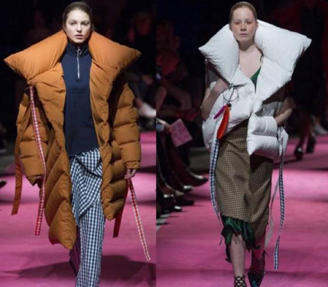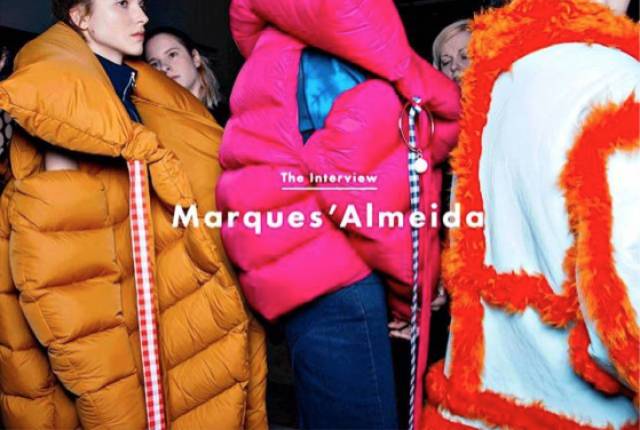 伦敦品牌Marques' Almeida成立于2009年,由设计师Marta Marques与Paulo Almeida所创立。大家都知道Marques' Almeida最具特色的是对牛仔布的处理,但在年底的秋冬秀场上,他家的不规则羽绒服也同牛仔衣一样,狂放不羁,横空出世。