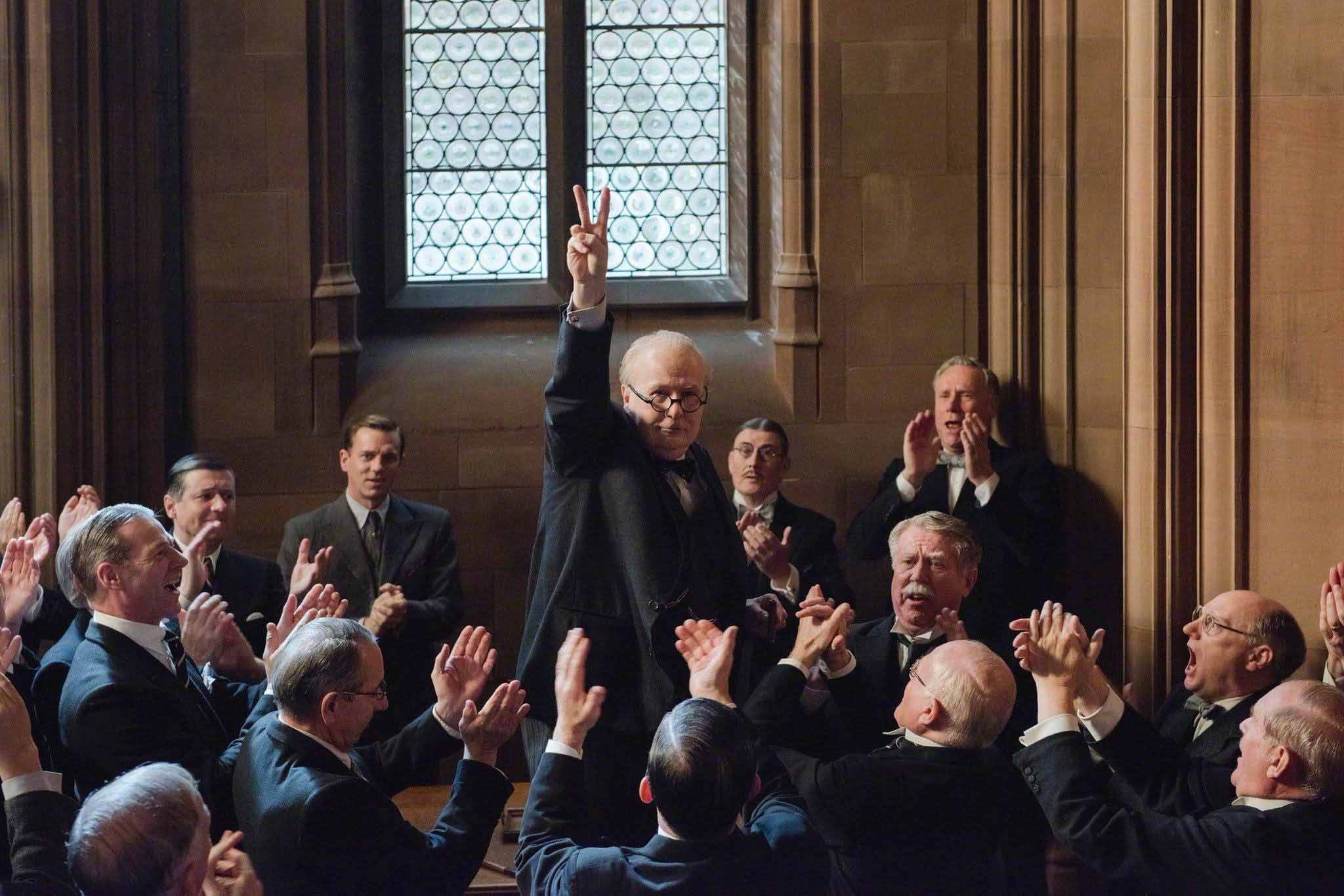 温斯顿·丘吉尔(加里·奥德曼 饰)与他的战时同盟的首次会面就是10页的对话;那场戏里需要17个人围坐在一起讨论。对于电影制作来说,这看起来似乎是不合情理的,所以对于身为导演的我来说,面临的最大挑战就是如何把这一组镜头塑造成一段张力十足、充满戏剧冲突的电影片段。为了那场戏,我们紧张地拍摄了三天。但是我们在那个房间却足足待了两个星期。我们在那个房间里面进进出出,整个房间除了戏就是戏,尽管辛苦,但演员们都非常支持,没有一丝抱怨。我们一点一点地拍摄,在加里的领导下,剧组的每个人都加入其中,参与创作。后来在剪辑中,我很幸运能与Valerio Bonelli合作,我们会一遍又一遍地回看每一场戏。 当某一场戏通过的时候,我们高呼“太棒了”,然后在重新回看的时候,又说“这不行”。我们会一遍一遍地回看,直到剪辑出我们真正想要的镜头。