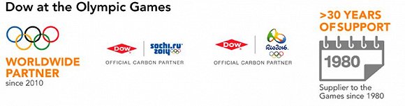 早在1980年的普莱西德湖冬季奥运会上,陶氏化学就以供应商的身份,捐赠过许多隔热保温板,为滑冰和滑雪橇赛事提供装备支持。它还在2010年成为奥运全球合作伙伴,以及2012年伦敦奥运会合作伙伴、2014年索契冬奥会和2016年里约奥运会的官方碳合作伙伴。