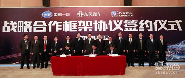 据悉,本次签约仪式在东风汽车总部武汉进行,一汽董事长、党委书记徐留平,东风汽车董事长、党委书记竺延风,长安汽车董事长张宝林等三方最高领导全部到场。