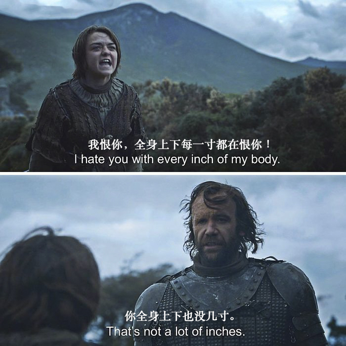 从二丫和猎狗的相爱相杀,到詹姆和“美人”布蕾妮的感情,这些修改过的对话保留了角色之间的关系,但同时又带有一些相当不错的幽默调侃。我们挑选了一部分,看看怎么以最幽默的一种方式来回顾《权力的游戏》吧!