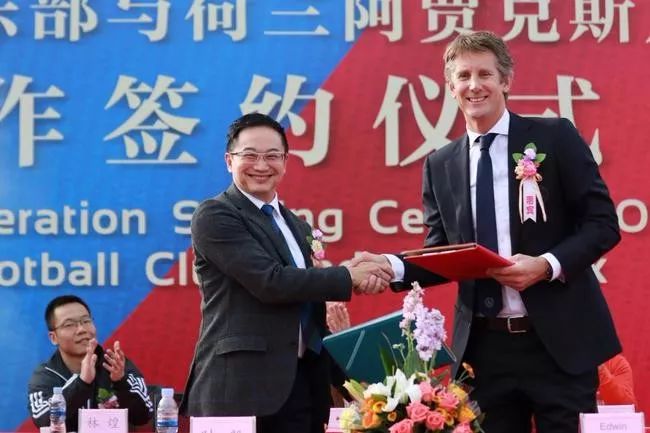 11月27日,广州富力宣布,与荷甲豪门阿贾克斯正式签订合作协议,阿贾克斯将派出以前荷兰国青教练员为首的7名全职足球教练和技术人员入驻富力足球学校,致力于打造领先全国的青训基地。阿贾克斯方面非常重视此次合作,俱乐部CEO、曼联名宿范德萨,携球队大使、著名球员罗纳德德波尔,专程来到广州和富力足校所在的梅州。
