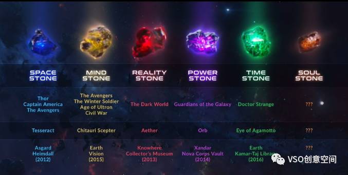 剩下的宝石:现实宝石出现在《雷神索尔2:黑暗世界》中,目前存放在收藏者坦利亚·帝凡的博物馆内,时间宝石则一直被奇异博士挂在脖子上(阿戈摩托之眼)。