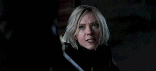 下一个镜头寡姐也是几乎泪目,这应该是《复联2》后两个人的初次相见,鼻酸....而且寡姐换了金色的新发型,真的超美啊!!