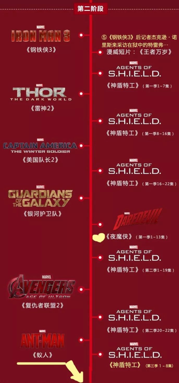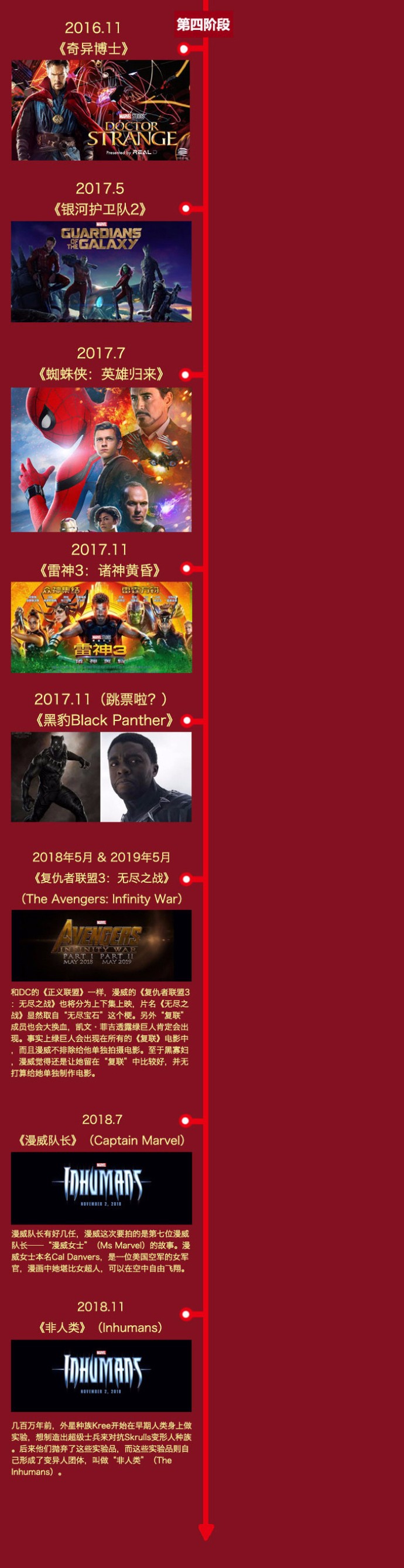 最后,附上漫威电影时间线,从这周开始十天看一部刚好看到《复联3》上映~