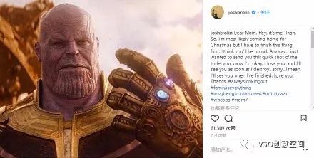 前两天复联3的预告发布后,反派灭霸的扮演者Josh Brolin开开心心的发了一条Instagram: