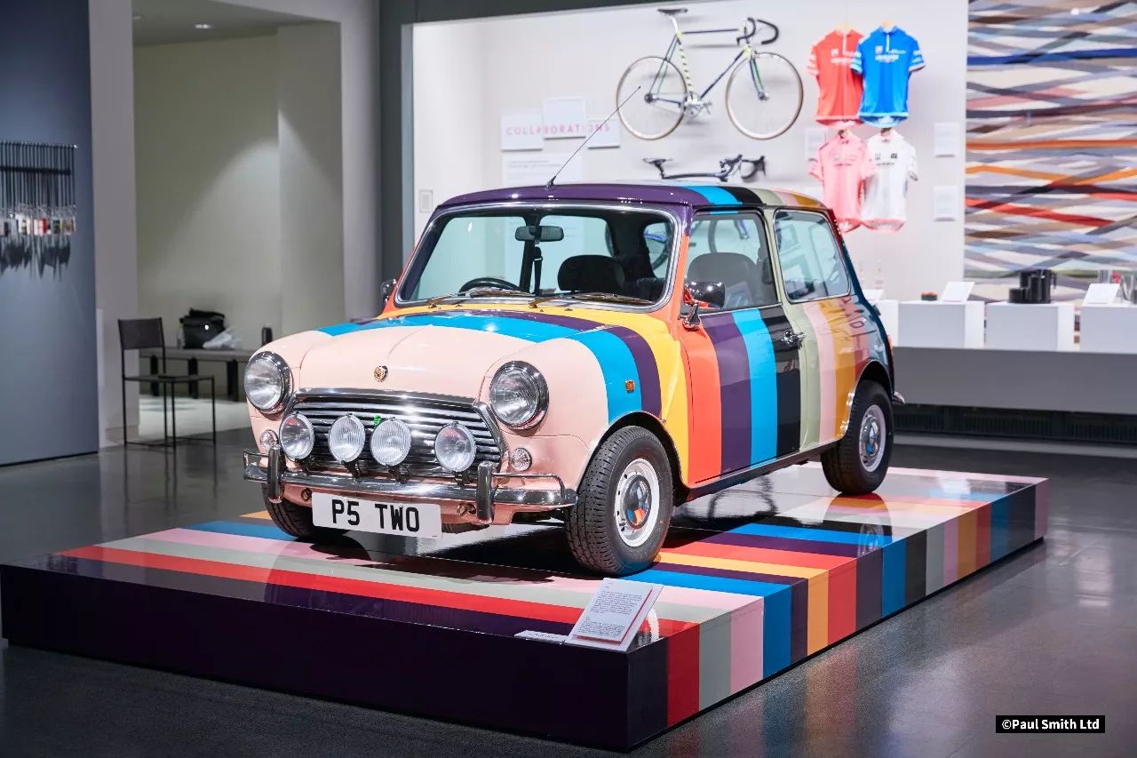 同时,展览也展示了 Paul Smith 跨度极广的跨界设计,依云的矿泉水瓶、莱卡相机、与华公司(当时)合作的 MINI 车款、自行车服装等等。Paul Smith 收到过的五花八门的礼物摆在了跨界设计对面。