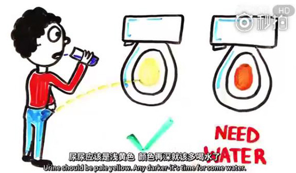 如果运动还没多大帮助,留意下你的尿液是什么颜色的。如果比浅黄色深,那说明你该多喝水了。