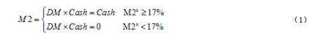 为验证货币政策和每季度企业现金持有量之间的关系,设定M2=DM*Cash。如果紧缩货币政策,则企业由于自身资产负债表恶化,会导致银行贷减少,企业投资将仅依赖于自身持有现金Cash;如果货币政策扩张,则企业自身资产负债表趋好,银行贷款增多,企业投资将随Cash和DM*Cash共同变化。