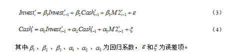 根据面板向量自回归模型(面板VAR)的相关方法,以Invest作为因变量,以Cash、M2作为自变量,构建如式(3)和(4)的向量自回归(VAR)实证模型。