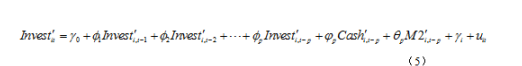 其中,Invest表示截面i在t时刻的内生变量向量组合【Invest,Cash,M2】,y表示截面的个体固定效应(2×1向量),Q则表示内生变量的滞后项的估计系数,P为滞后估计的阶数,u是误差扰动项。