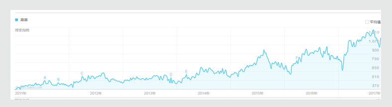 在大众点评成都站搜索小腒肝串串香,就有1033个搜索结果;而从串串香的百度搜索指数来看,从2011年兴起到2017年再度火爆,市场热度已经上升了几个梯度。
