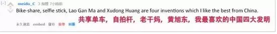 我最喜欢的中国四大发明——随着毒奶文化在电竞圈愈演愈热,它的名声也逐渐传播到了国外去,并引起了国外玩家的热议学习和媒体的争相报道。外国网友不禁打趣道:“共享单车,自拍杆,老干妈,黄旭东,我最喜欢的中国四大发明。”