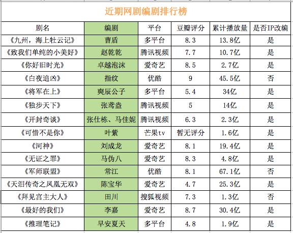 硬糖君梳理了近期播放量、口碑均在线的网剧和编剧们。他们之中,既有钟爱品质喜欢大戏的编剧老炮儿,也有初出茅庐的年轻人。众多的改编剧本也伴随着争议,但只要能够戳中年轻人的一两个点,写出来的剧本也就成功一半了。