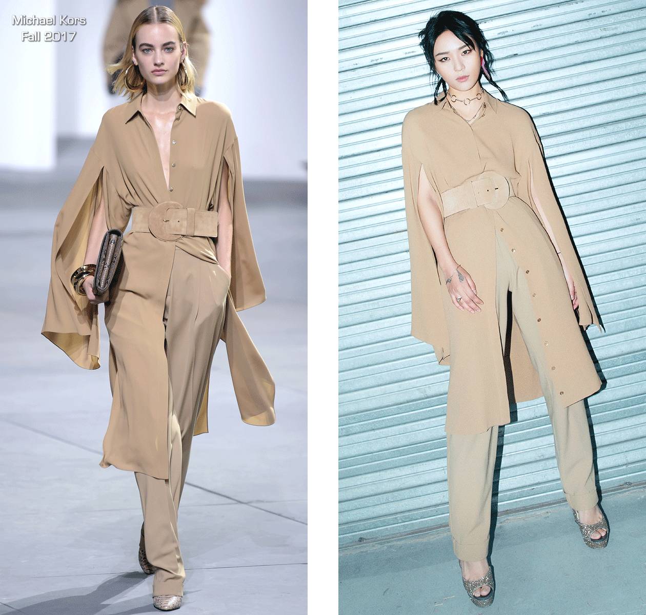 脱下大衣上台领奖时又化身未来女战士,当然也可以和杨幂在活动结束后手拉手走进隔壁酒吧蹦个迪,连厚底高跟鞋也是现在时髦的款式。