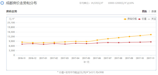 成都作为国家级中心城市,政治、经济地位突出,但房价仍保持在1万余元。因此有人认为:成都房价是全国的洼地,未来具备较大上涨空间。