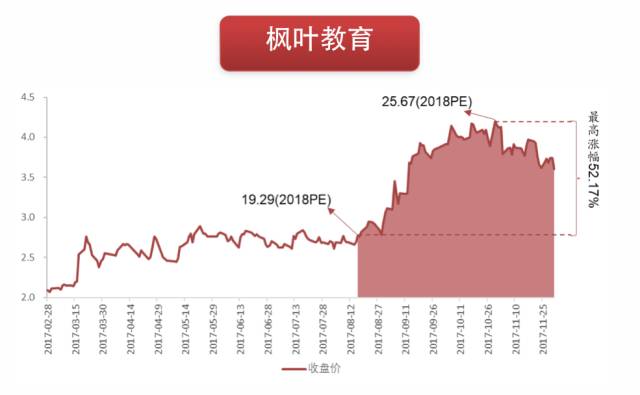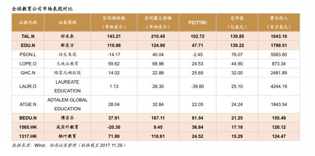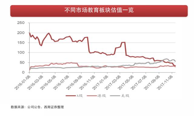 此前港股教育股的上涨行情,就是明显估值优势下的一轮上涨,特别是深港通/沪港通标的,南下资金买入效应更明显。民生教育、枫叶教育等民办学校标的估值提升显著。