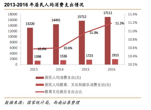 2)居民消费水平提升、消费升级在二胎政策催化下激发教育需求;