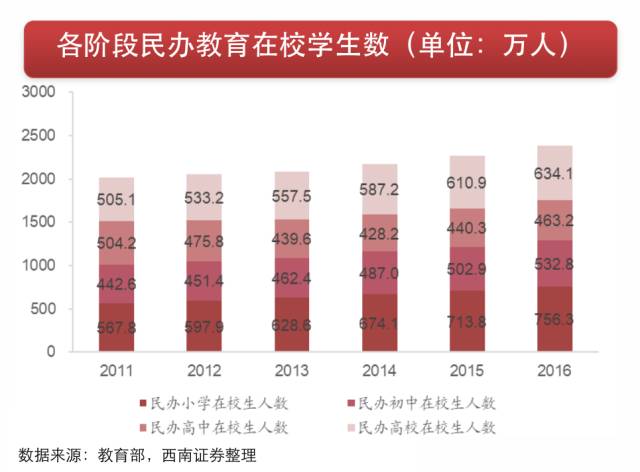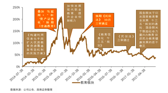 3)社会资本大规模涌入教育板块,进一步推动板块扩张。