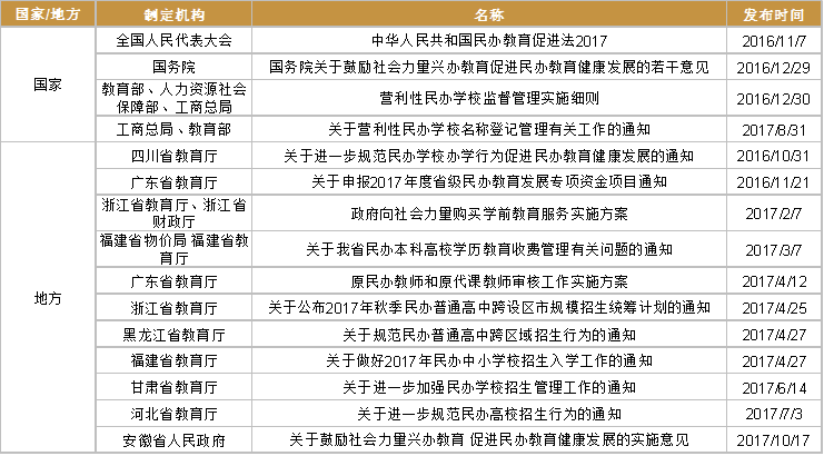 《民促法》自去年11月7日修正发布后,目前已有10省教育厅相继出台有关法律法规,预计相关配套政策也将跟进发布,板块进入政策密集发布期。