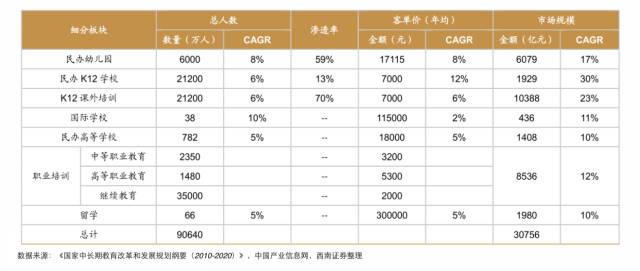 教育不可逆性将使资源向教育龙头倾斜,优质民办教育资产有望实现量价齐升,带动市场规模持续扩大,整体市场规模有望达到3万亿高峰。