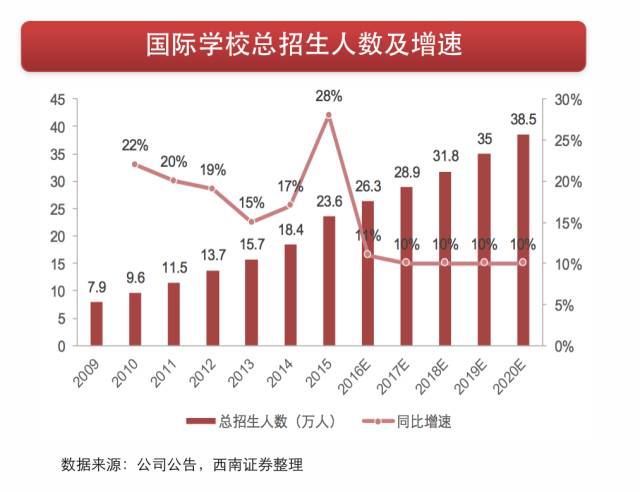据中国产业信息网数据,未来国际学校招生规模将以不低于10%的增速增长,2020年或可达到38.5万人。我们认为,随着本科留学成为主流趋势,留学生更偏向于低龄化,或将扩大对国际学校的需求。