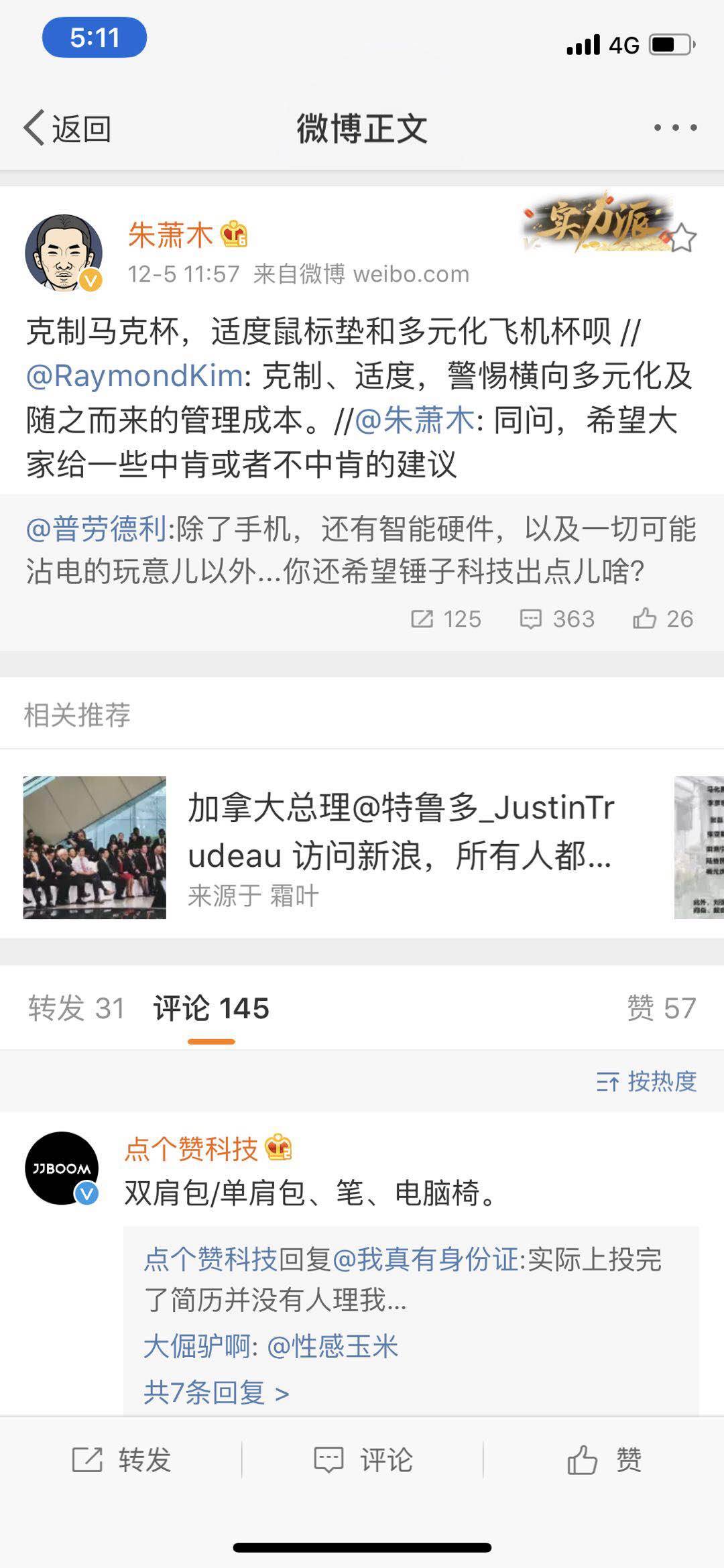 与罗永浩拜访小米之家同样值得关注的是,锤子朱萧木转发了这样一条微博,问微博网友除了手机和智能硬件,以及一切可以沾电的玩意儿,你还希望锤子科技出点啥?