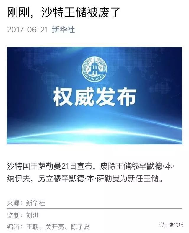但透过现象看本质,新华社这条微信标题一个9个字,刚刚!沙特王储被废了。小编回复网友吐槽说,三个编辑的分工是,王朝负责刚刚、关开亮负责被废了,而陈子夏负责沙特王储。