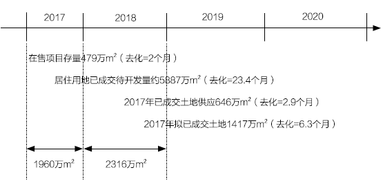 注:土地供应按照11个月后入市,去化周期=土地可建面积/过去12个月商品住宅月均成交面积,土地存量按照过去12个月均成交面积进行平均批量拆分上市。本供应量仅考虑住宅,因此对土地供应商住用地部分进行折算,按照0.8为折算系数。