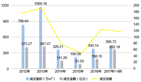 2012~2017年1-9月昆明土地成交情况