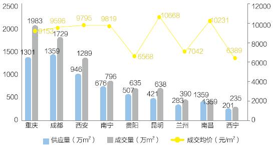 2017年1-10月西部城市群商品住宅成交供、求、价横向对比
