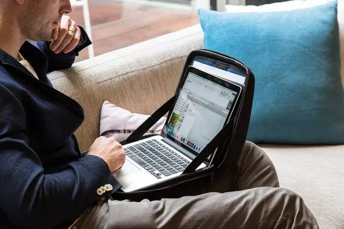 照顾到使用者的健康以及便利,MOBICASE 创造性地将电脑支架直接嵌在包中。