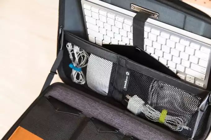 随身必备的充电器、充电线、充电宝、手机、键盘都有它们专属的位置,分区明确。